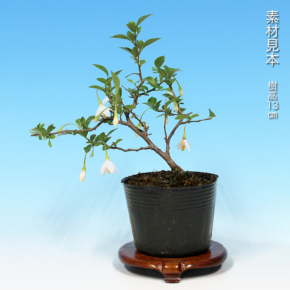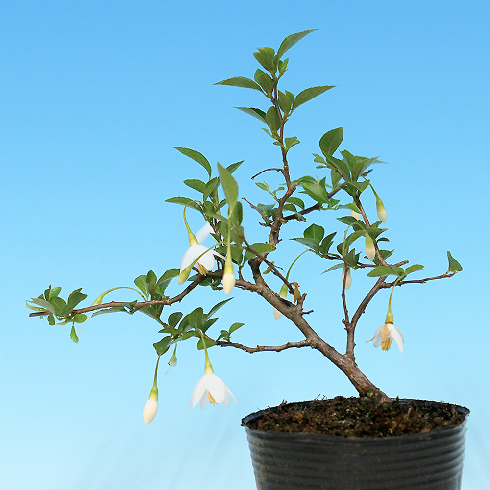 エゴノキ科の落葉小高木。初夏に咲く可憐な白もしくはピンクの花。夏に青白色に熟すドングリに似た果実は涼感を味わえます。丈夫で育てやすく、芽吹きがよく小枝がよくできます。また自然交配で実が付くので初心者にも楽しめる樹種です。
