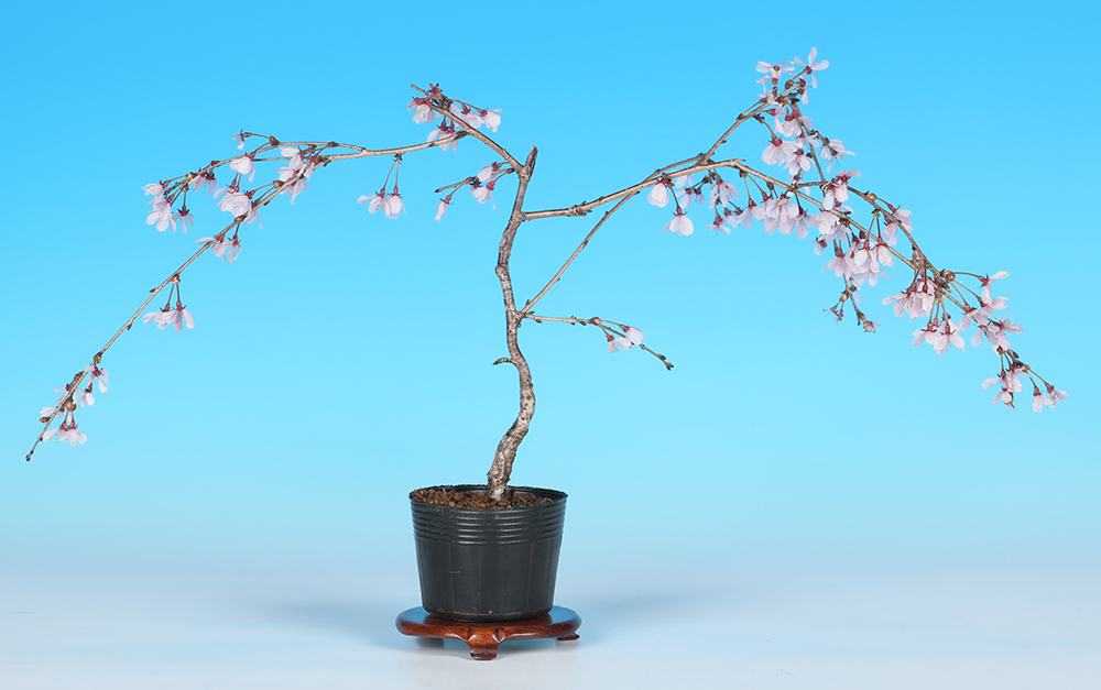 古来より日本の春を代表する花木として、誰もが愛着を持つ樹種です。盆栽としても春の展示会には欠かせない存在です。一口に桜といっても秋咲きの「十月桜」、冬に咲く「河津桜」、寒中から春先に咲く「寒桜」「緋寒桜」、春先の「彼岸桜」「山桜」「富士桜」「江戸彼岸」、そして「染井吉野」「枝垂桜」「大島桜」、晩春を彩る数々の「八重桜」や園芸品種たち。まさに桜の品種は多士済々です。