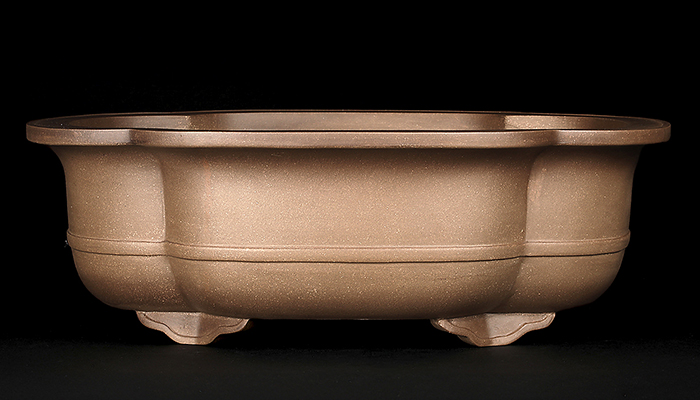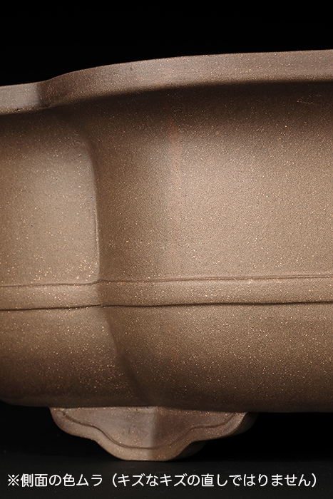 きめ細やかな土目と確かな成形技術で格調高い仕上がりを見せる「張氏製陶」の泥鉢。その技術の高さを見込み、当社が様々な型・サイズを指導。そして使い勝手を考慮して鉢の厚み・鉢穴・針金穴など事細かに指導を行いました。その結果プロも認める現代中国泥鉢最高峰と呼ぶに相応しい仕上がりを実現しています。そして仕上げのロウ引きを排し、焼成前に時代付けを施し、自然な仕上がりを実現した製法は通気性が良く培養面で優れた効果を発揮します。また使い込めば本物の時代も乗りやすく、美観・培養両面で優れたオリジナル盆栽鉢です。