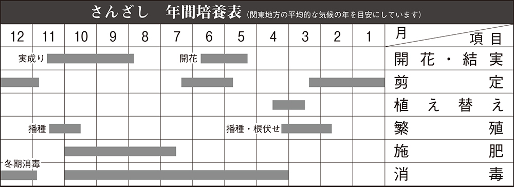 花芽は短枝に生じ、徒長枝にはつきにくい性質です。落葉後から芽出しまでの間(休眠期)に長い枝を切るくらいにします。やや短めの枝は短枝の可能性があるため、形を整えようとして切ると花芽を減らしてしまうことになります。比較的強権な樹勢ですが、耐寒性は低いので冬期には保護しましょう。
