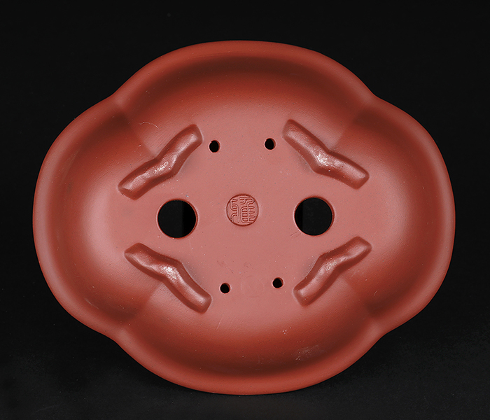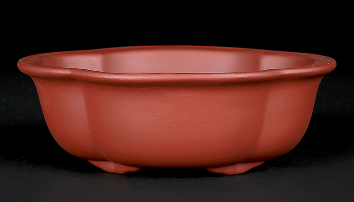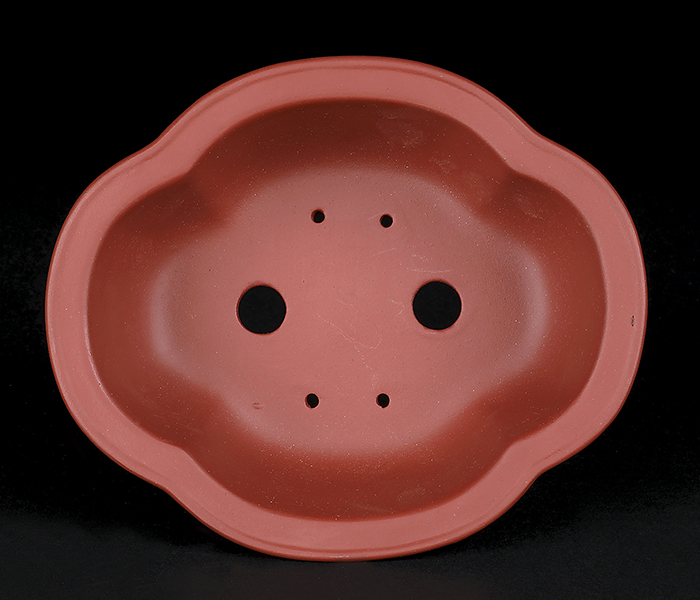 オーソドックスな木瓜式鉢。この柔らかな線はとても鋳込み鉢とは思えない仕上がり。深さもあるので迫力のある樹も受け止めます。