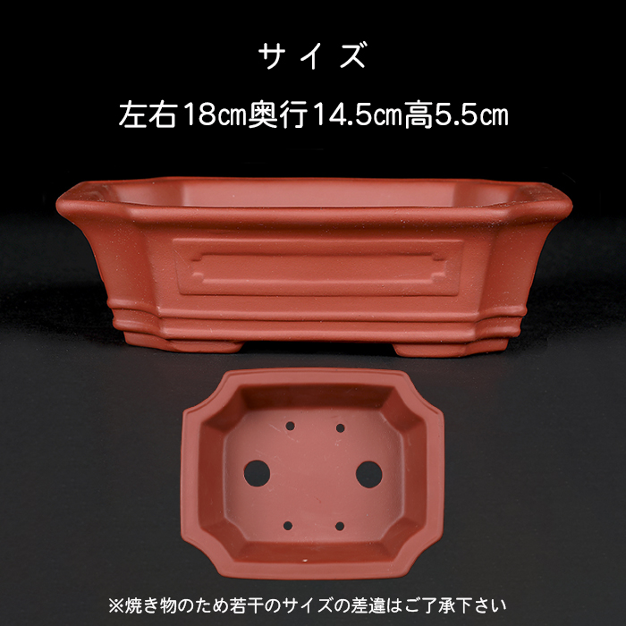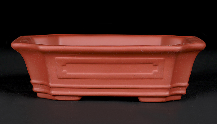 人気の隅切額面長方鉢。松柏の本格的な模様木や直幹などに最適です。格調高い鉢映りを実現してくれるでしょう。