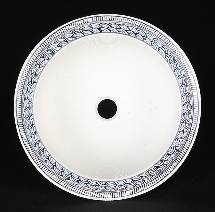 本格的に樹鉢を制作するようになったのは2006年頃。実父である春石は月之輪涌泉が制作(絵付け)する鉢の成型を担当しており、若い頃から春石に鉢づくりの基本を学んでいました。鉢制作を手掛けるようになるまで30年近い陶工としての経験を積んでいます。春石直伝の成型技術と涌泉を彷彿させる精緻な筆致の絵付鉢は「月之輪涌泉」の再来としてデビュー当時から注目され、高い評価を得ています。
