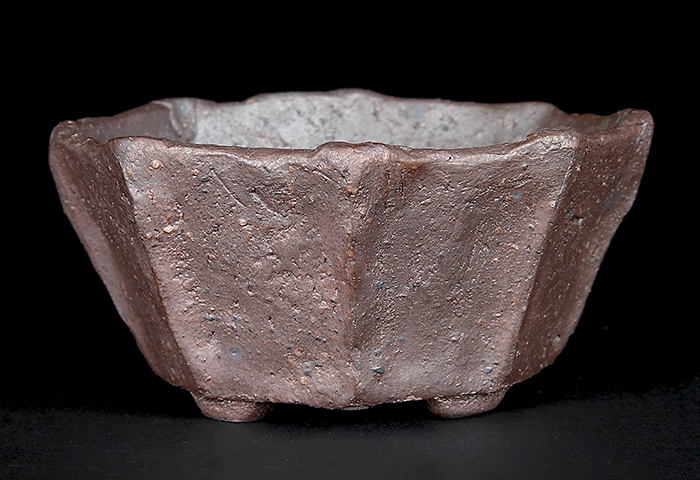 常滑の老舗窯元・誠山窯で焼成され独創的なデザインの草鉢。作者は常滑釉色盆器の第一人者「黎鳳」の奥方・美津江氏。女流作家ならではの優しい風情、そして前衛的な型は創作意欲をそそられます。