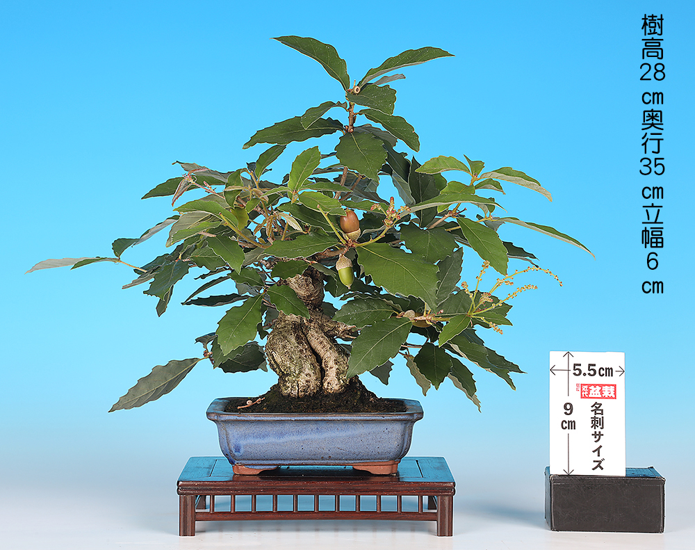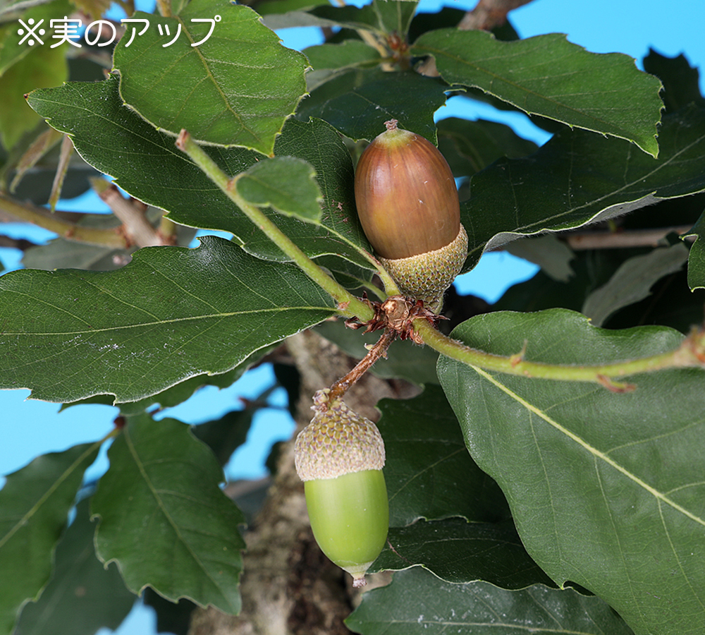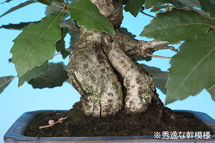 秋の紅葉と、ドングリ状の実を魅力とする樹種。持ち込むほどに味わいを増す幹肌が醸し出す風情を見所とする樹種で、この作品のような本格模様木は大変珍しく、貴重な逸品である。実付き確認済み
