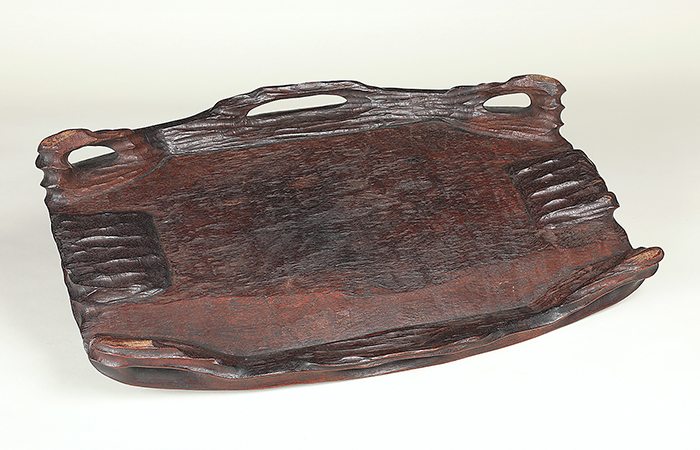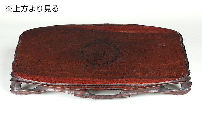 くり抜きで作られた丁寧な細工と、天場の美しい木目が評価される作品。樹との調和を意識して装飾が意識的に抑えられており、背が高い文人から幅広の株立まで対応できる逸品。