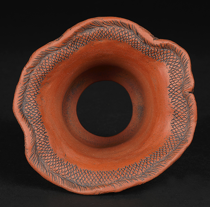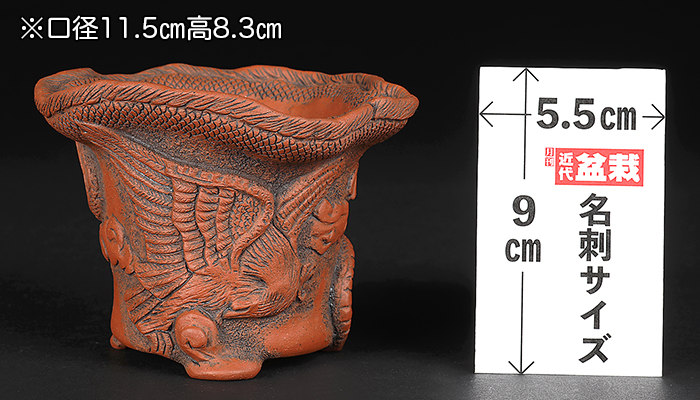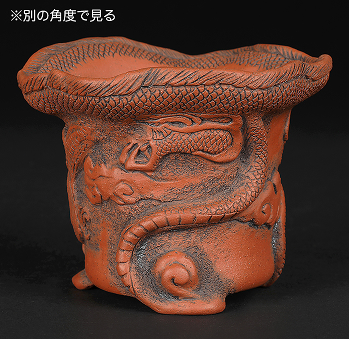 現代小鉢作家展にも出品歴がある陶工で、本器にも見られる浮彫細工を得意とする。全て彫り出しで作られており、龍を象った鉢縁とするなど、芸術作品のような仕上がり。共箱・共布付。落款:義・他