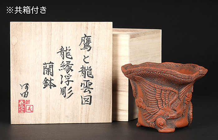 河田義之作龍縁浮彫鷹と龍雲図丸鉢