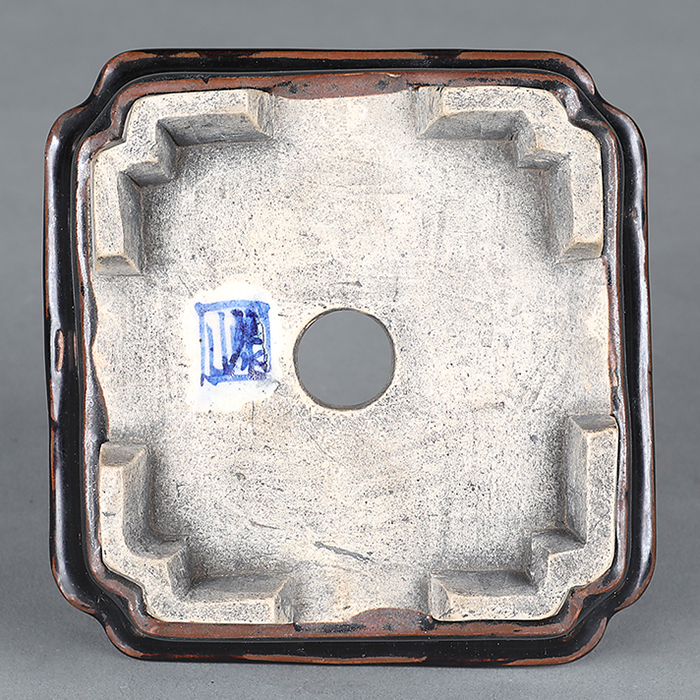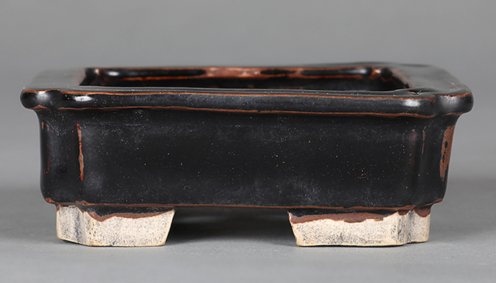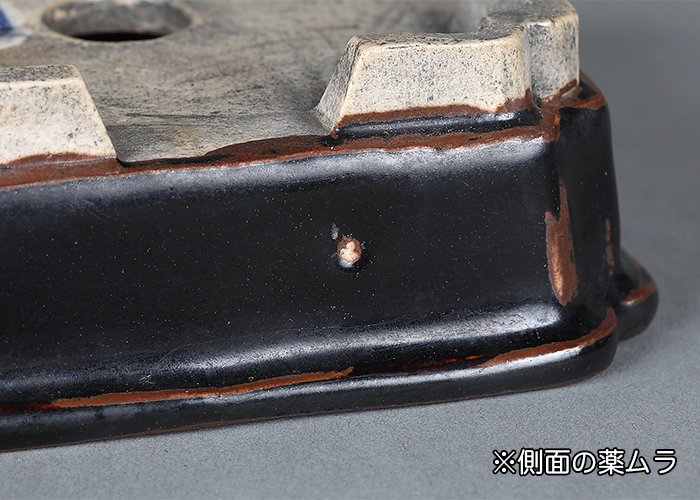 九霞園・村田久造氏の依頼で、わずかな期間だけ作られた泰山鉢。飴釉もしくは辰砂釉の窯変で、色調の変化が美しい仕上がり。側面に色ムラと軽微なガタあり。落款:泰山