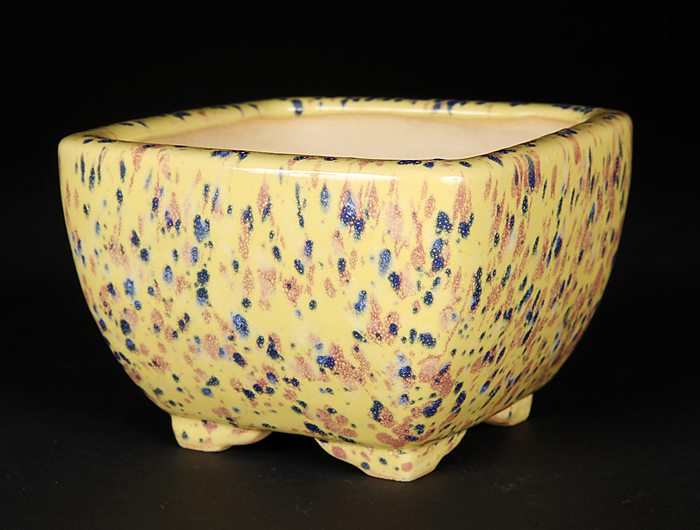 燿山窯英明黄斑紋結晶釉正方鉢