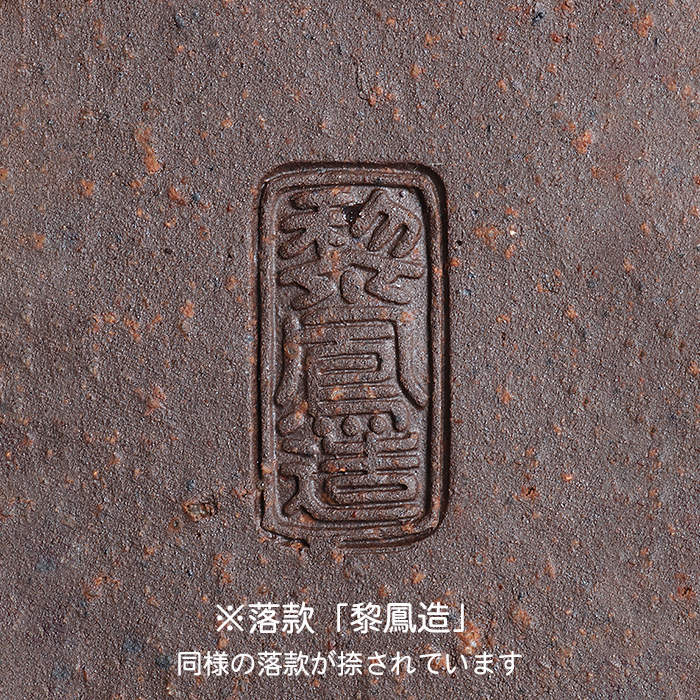 型は南蛮型でやや捻りを入れることで柔らかみの出しています。ワンポイントで白泥をあしらっており、洒脱さも加味された一枚。落款:黎鳳造