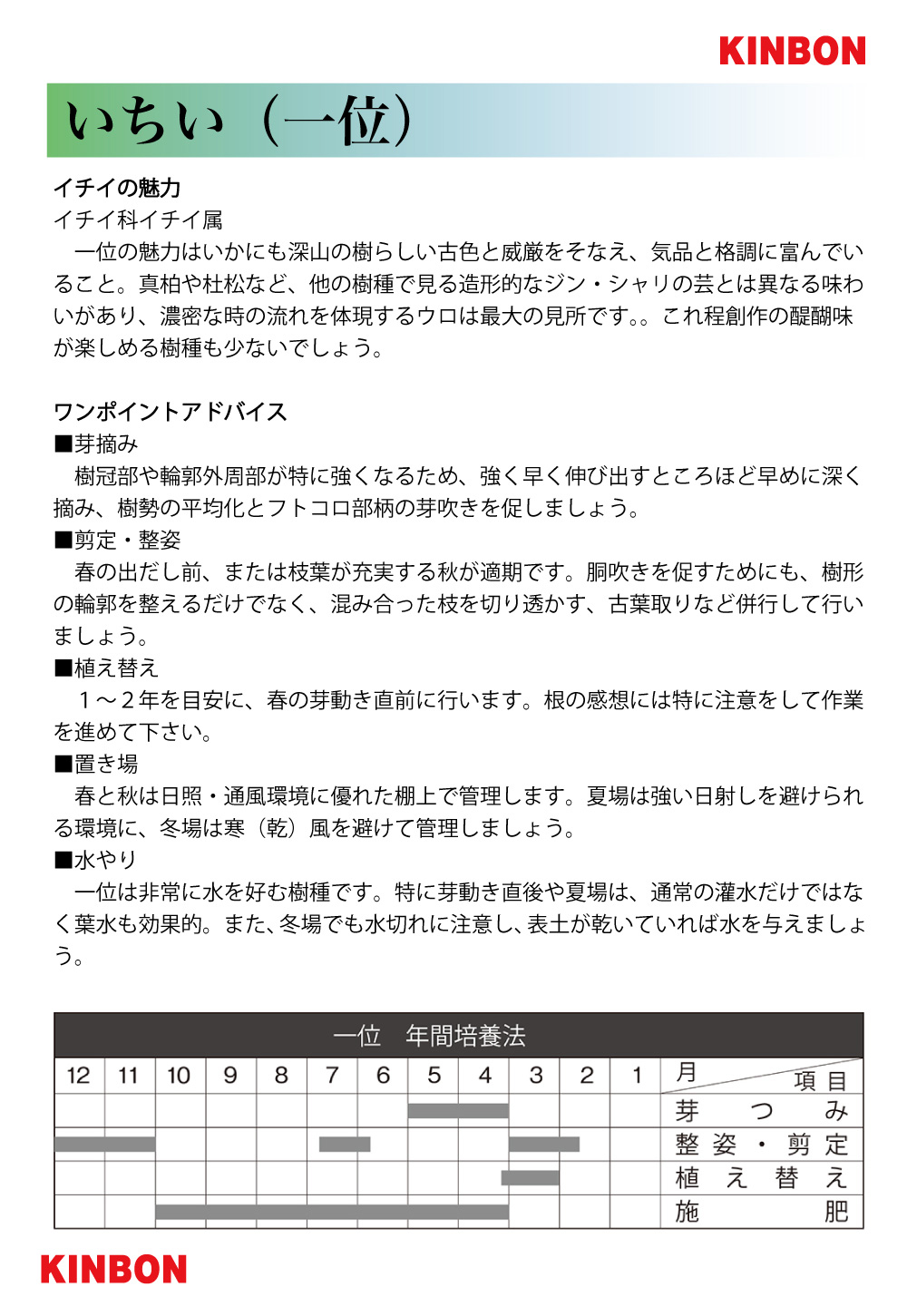 一位は非常に水を好む樹種です。特に芽動き直後や夏場は、通常の灌水だけではなく葉水も効果的。また、冬場でも水切れに注意し、表土が乾いていれば水を与えましょう。