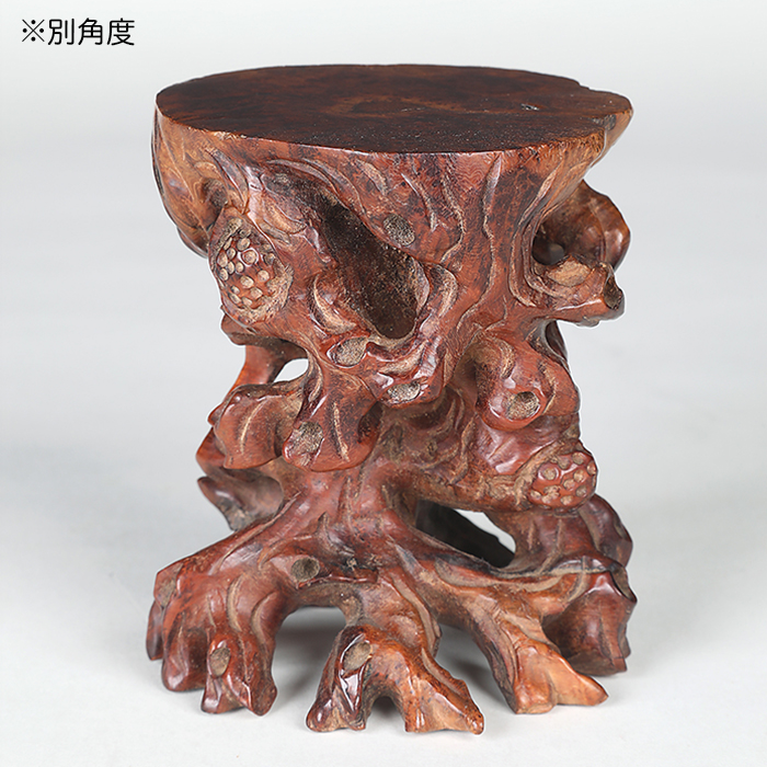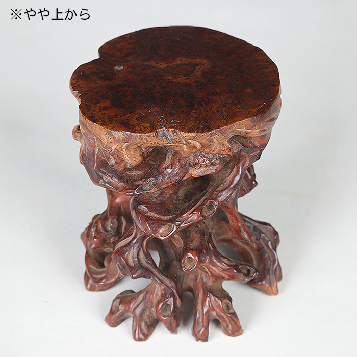 小さな寸法だが、細かく丁寧な細工が施された根卓。このサイズの根卓は珍しく、小品盆栽愛好家必見の逸品。木箱付。
