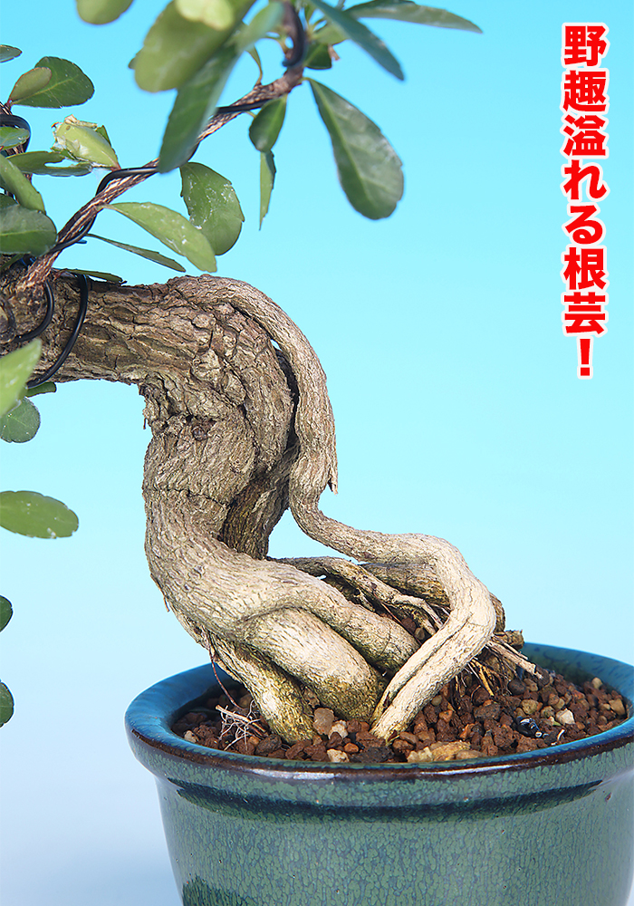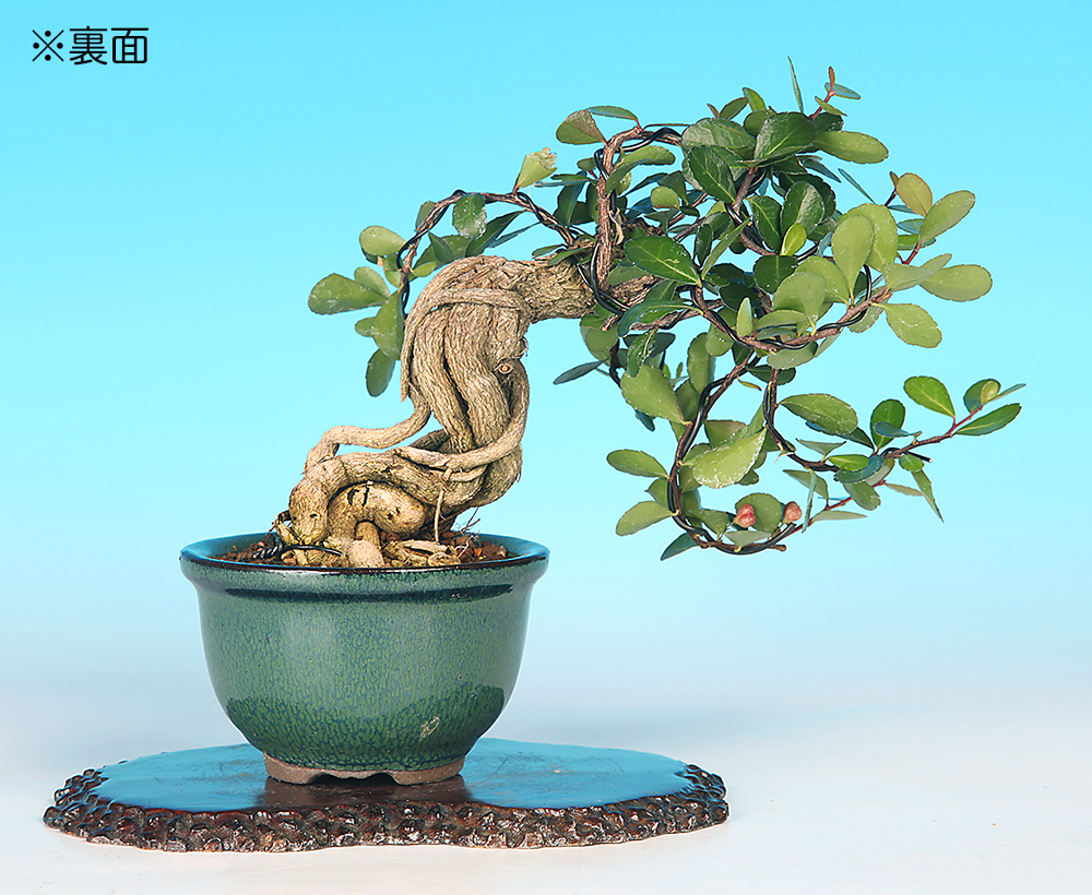 中国南部や台湾など温暖な地域の海岸の岩場に自生する常緑樹。南方系樹種の中では耐寒性があり、秋に色づく実がハート型で「ハートツリー」の名で園芸品が流通している。盆栽としての基礎づくりが済まされた根上がり素材を特選頒布!