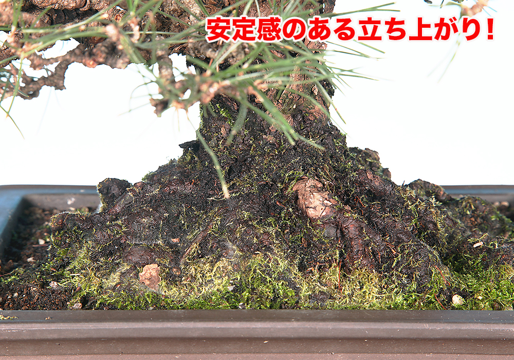 枝先にはまだ粗さが残るものの、荒れた幹肌が醸し出す重厚な趣と迫力は大きな魅力。人気のある小ぶりな中品素材であり、高い将来性を秘めた逸品である。