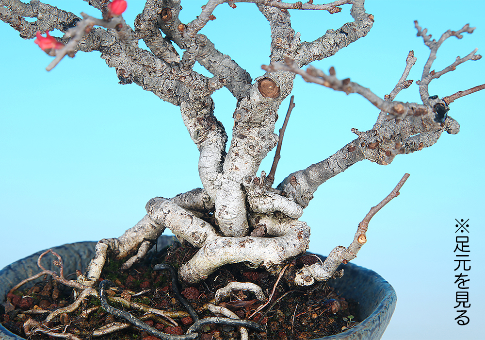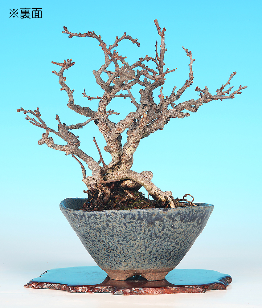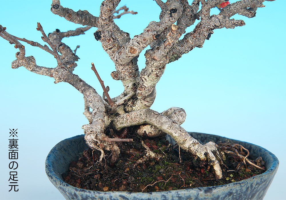 細幹素材ながら丁寧に持ち込まれており、幹肌の古色も申し分ない。小枝を混ませていけば数年で飾れる姿に仕上がるだろう。