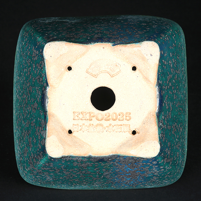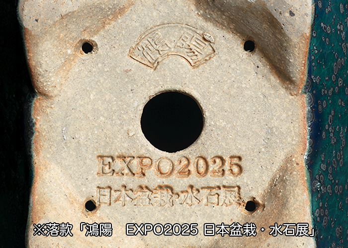 EXPO2025大阪・関西万博期間中の5月に、万博会場で開催された「日本盆栽・水石展」。このイベント開催を記念し、常滑の人気作家・鴻陽が記念鉢を製作した。以下に紹介した作品群がその記念鉢で、釉薬鉢の名手である鴻陽ならではの窯変が美しい仕上がりである。すべての作品に記念鉢を証明する「EXPO2025 日本盆栽・水石展」の落款が捺されており、本誌では各作品1名ずつの限定発売。