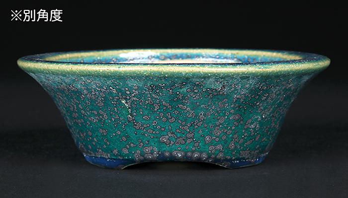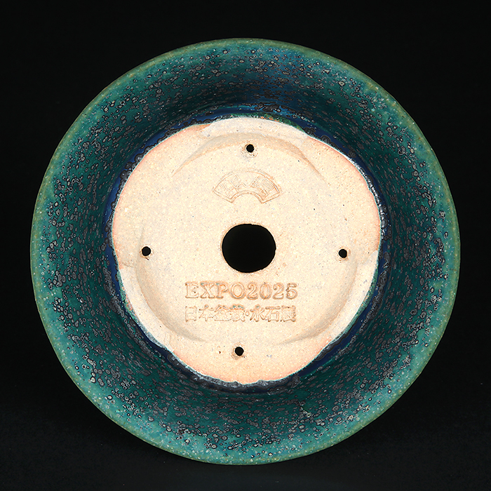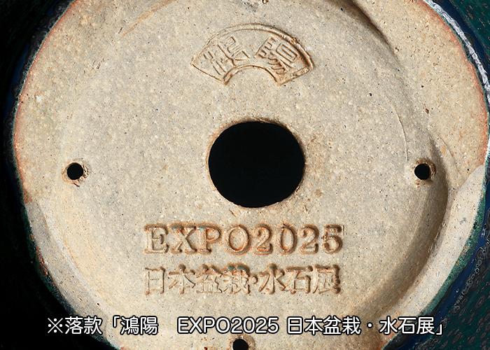 EXPO2025大阪・関西万博期間中の5月に、万博会場で開催された「日本盆栽・水石展」。このイベント開催を記念し、常滑の人気作家・鴻陽が記念鉢を製作した。以下に紹介した作品群がその記念鉢で、釉薬鉢の名手である鴻陽ならではの窯変が美しい仕上がりである。すべての作品に記念鉢を証明する「EXPO2025 日本盆栽・水石展」の落款が捺されており、本誌では各作品1名ずつの限定発売。