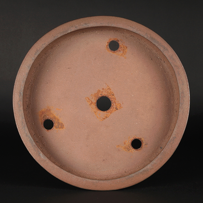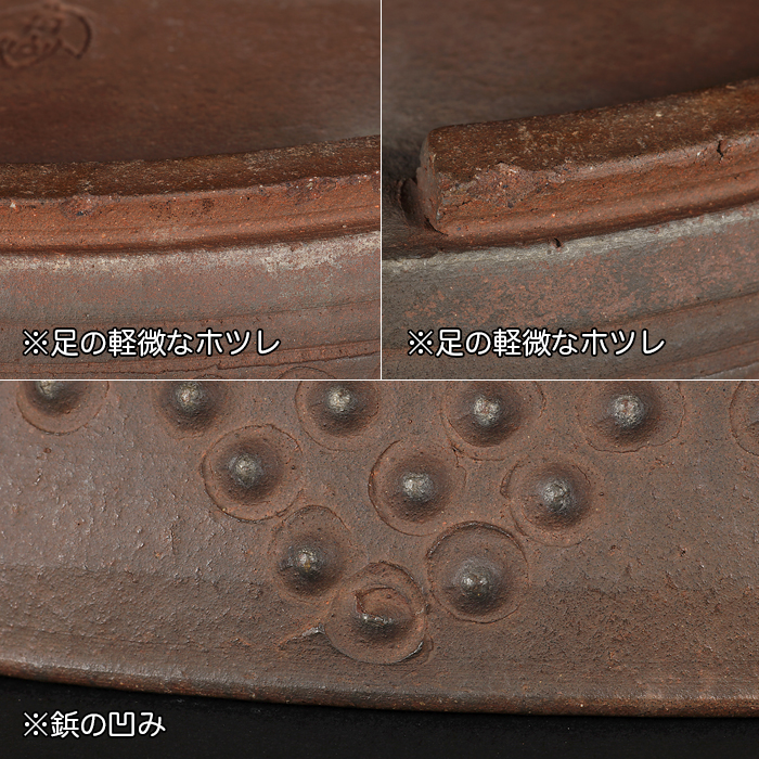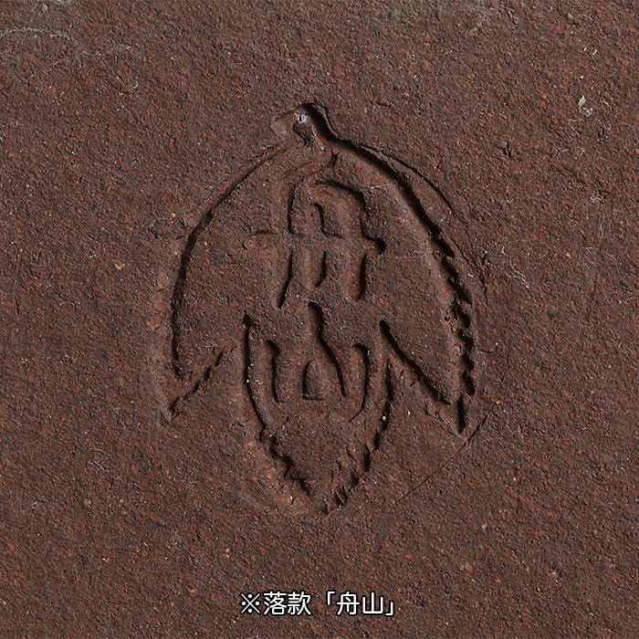 時代が乗りやすい舟山の土目らしい、見事な古色が感じられる作品。やや浅めの型ながら、文人木など洒脱な風情と合わせると抜群の調和を見せるだろう。足にホツレが数ヵ所あり。落款:舟山