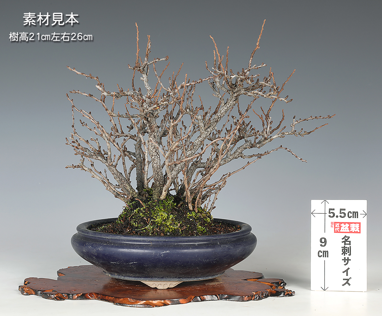 長寿梅らしい灌木の風情を持つ素材で、枝数多く古さもあり、将来が楽しみです。素材ごとに雰囲気の違いあり。