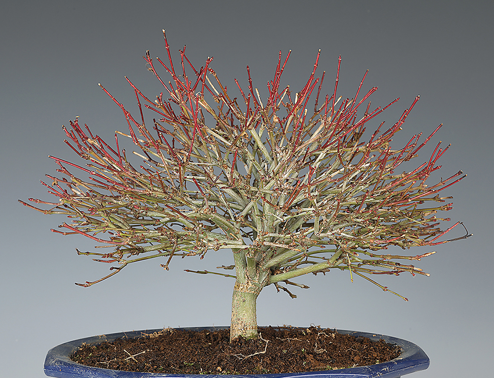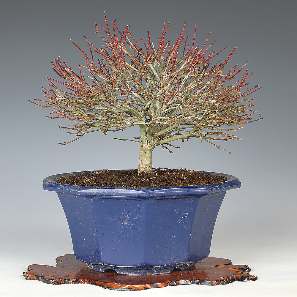 すでに細かな枝岐れを見せ、丁寧に作り込まれてきたことが伺える優良素材。鉢替えをすれば十分に飾れる逸材です。プラ鉢入り。