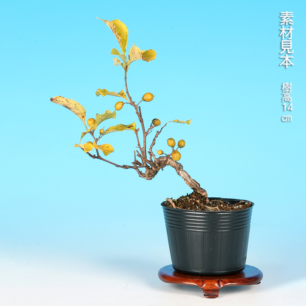 実物盆栽屈指の人気を誇る樹種「つる梅もどき」。その中でも八ッ房性で芽吹きが良く、枝が徒長しにくい品種の「八ツ房つる梅もどき」。実付きも良く貴方好みの樹づくりが楽しめる素材です。