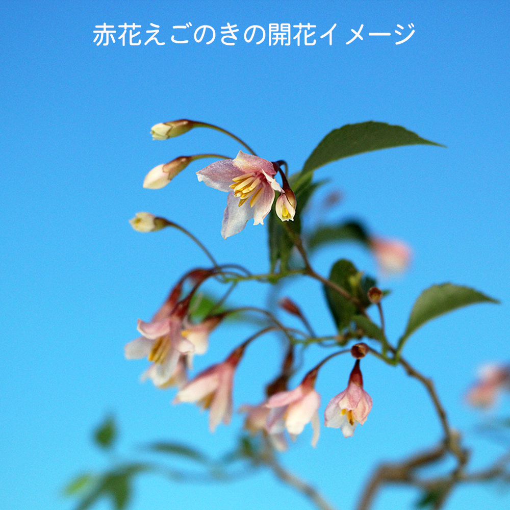 エゴノキ科の落葉小高木。初夏に咲く可憐な白もしくはピンクの花。夏に青白色に熟すドングリに似た果実は涼感を味わえます。丈夫で育てやすく、芽吹きがよく小枝がよくできます。また自然交配で実が付くので初心者にも楽しめる樹種です。