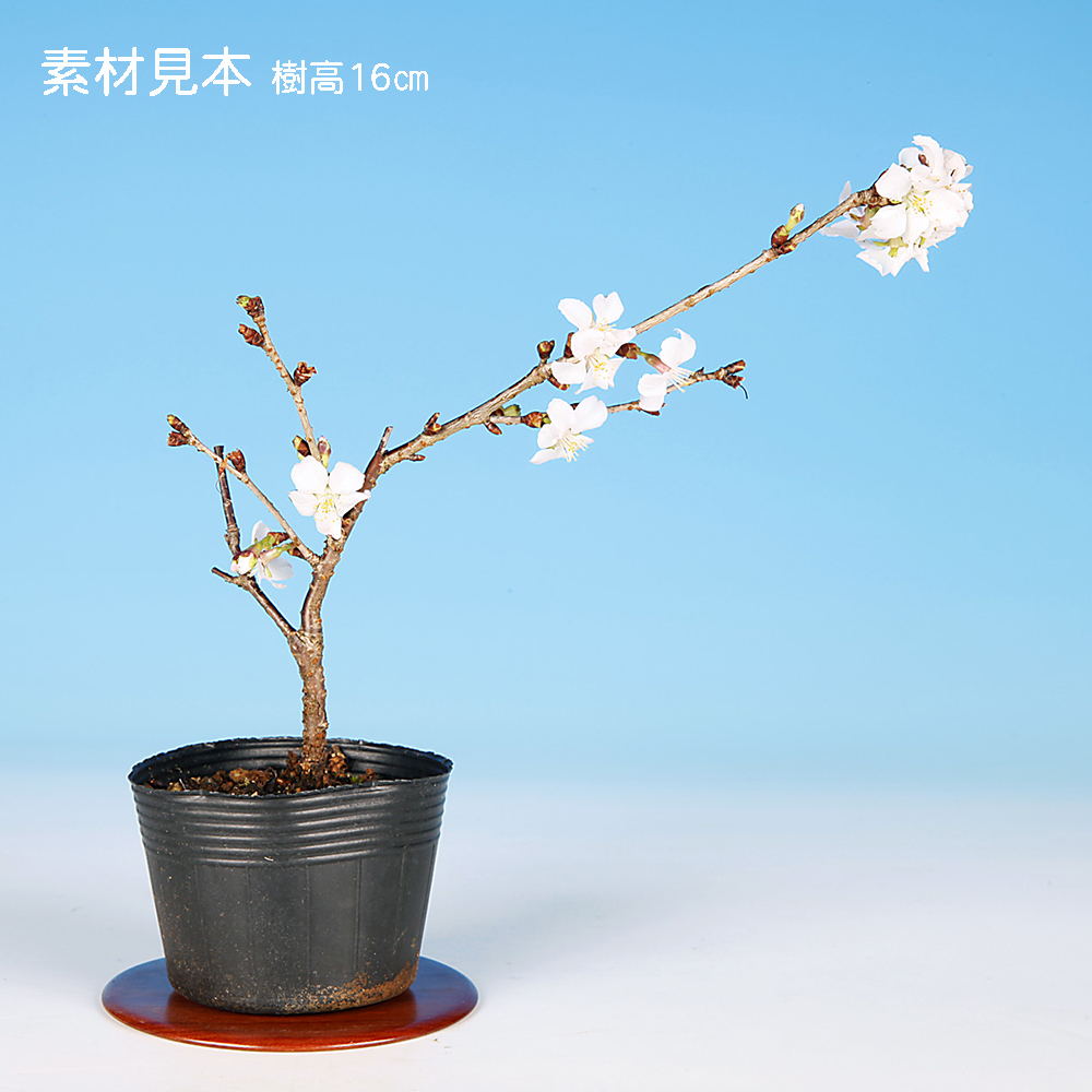日本の春を代表する花木・桜。盆栽としても春の展示会には欠かせない存在です。「信濃寒桜」はオオシマザクラとヒカンザクラの自然交配種といわれ、白から淡い桃色の一重の小さな花を可憐に咲かせる人気品種です。また、二季咲き性で10月頃から2~3月頃までポツポツと花を咲かせ、長く楽しめる希少品種です。大きく育てるのもよし。ミニ盆栽に仕立てるのよしの苗木素材。卓上で手軽にお花見を楽しんで下さい。お部屋のインテリアやガーデニングなどにもオススメ。