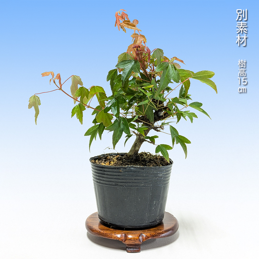 葉が小さく枝が混みやすい上に軸が太りにくい性質の美濃八ッ房楓。大変作りやすい品種で小品盆栽・ミニ盆栽に仕立てるのに最適な素材です。