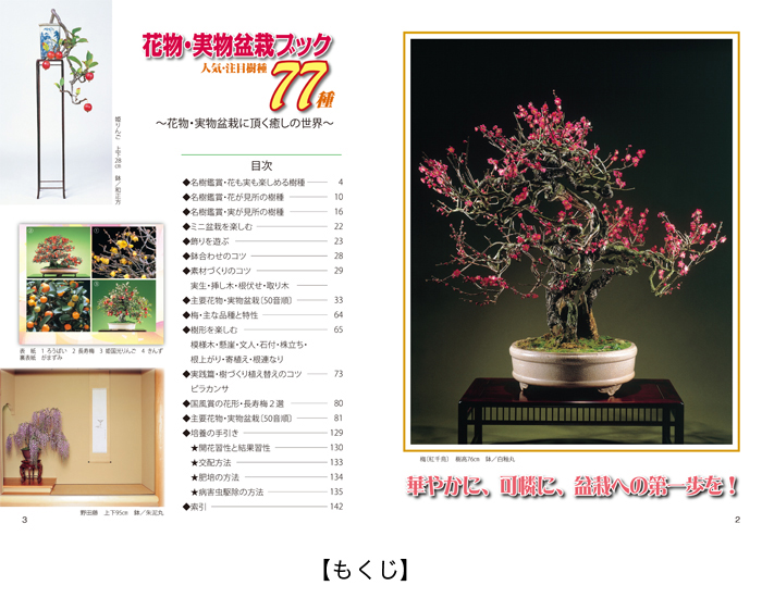 盆栽樹種、全77種の花の咲かせ方、実付けのコツを網羅! 開花習性と結果習性他、交配・肥培・消毒等も紹介しています。この一冊で、花も実もある盆栽ライフをお楽しみ下さい。