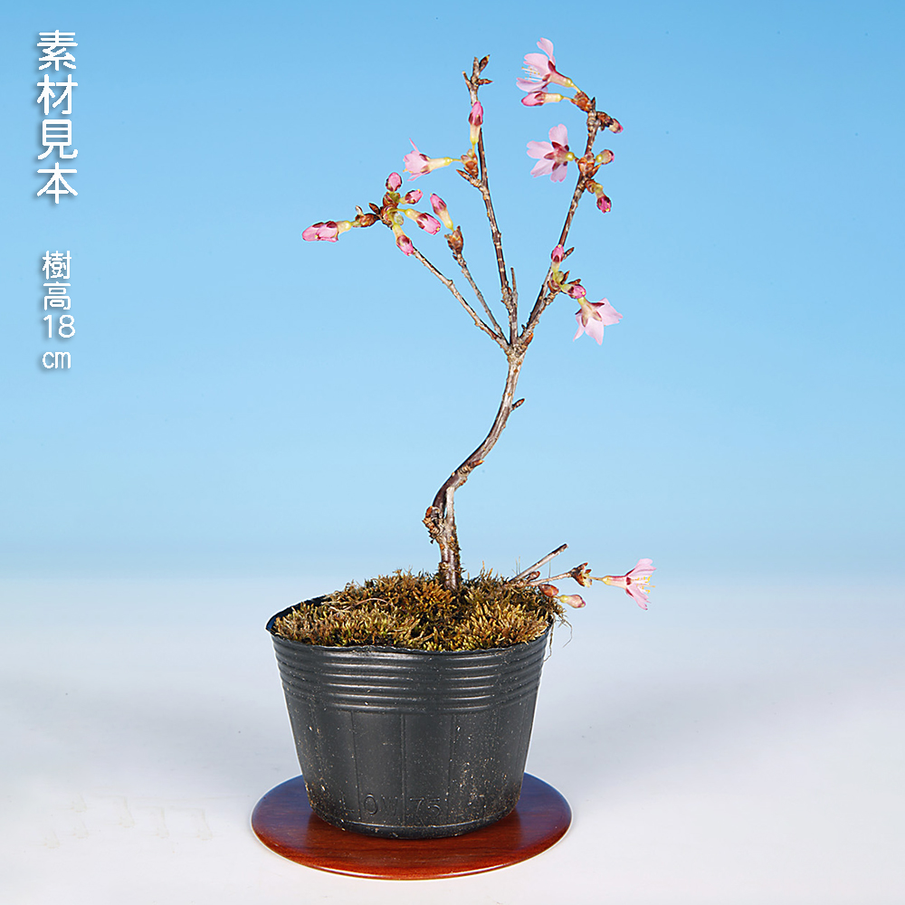 日本の春を代表する花木・桜。盆栽としても春の展示会には欠かせない存在です。「カンヒザクラ」と「マメザクラ(富士桜)」との交配品種で、早咲き、愛らしい濃い紫紅色の小輪で花を下向きに付けるのが特徴。花も小さいので小品盆栽・ミニ盆栽向きです。卓上で手軽にお花見を楽しんで下さい。お部屋のインテリアやガーデニングなどにもオススメ。