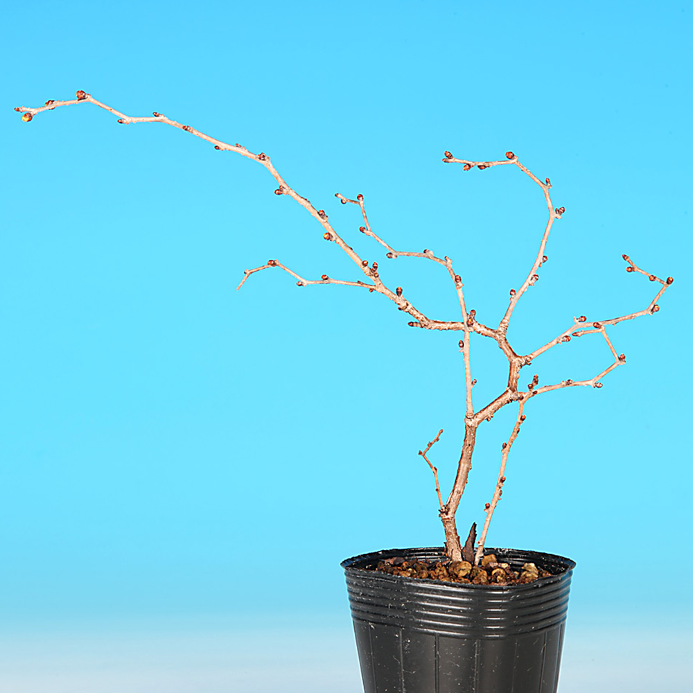 富士桜の一品種で枝に自然とジグザグと模様が入る雲龍性の品種「湖上の舞」。木が若いうちは目立ちませんが、歳を重ねるごとに枝がうねるようにくねくねと展開して味わい深い樹形になっていきます。花色は白~淡ピンク色、直径2~3cmの一重咲き。花付きが良く、小さくまとまるので小品盆栽・ミニ盆栽向きです。卓上で手軽にお花見を楽しんで下さい。お部屋のインテリアやガーデニングなどにもオススメ。