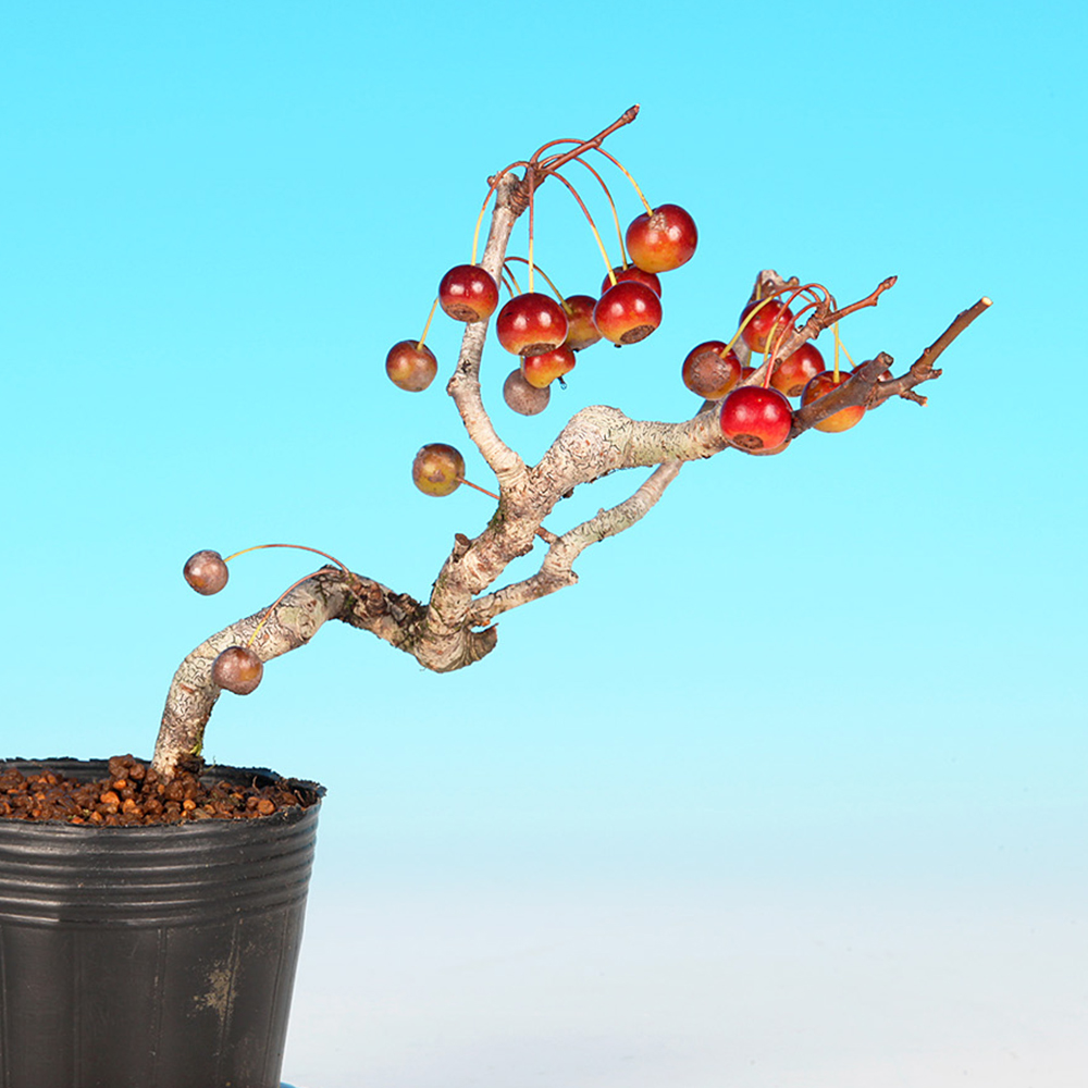 盆栽界で言う深山海棠は、赤実の実海棠や自生ズミ、ときわけズミの中でも希な黄実を重視する。それ以外にも花が華麗な垂糸海棠や花が上向きに咲く受咲海棠などがあり、それぞれに鑑賞価値は高い。実姿はもちろん、花姿、寒樹の姿と四季と通して楽しめる樹種です。