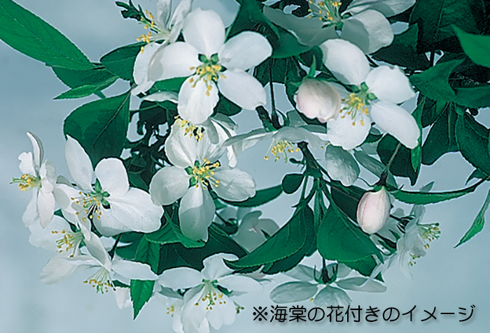 海棠は自分の花粉では受精しない自家不和合性の性質で姫りんごなど、他のりんご属との交配が必要です。逆に言うと姫りんごなどの交配用としてもオススメです。